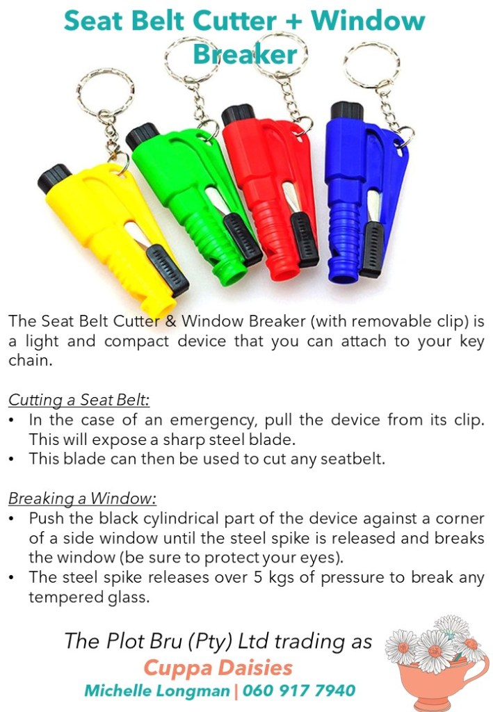 Seat Belt Cutter DISCLAIMER Select an image below to see full instructions on how to use these self defence items. Kubotan Seat Belt Cutter Personal Alarm